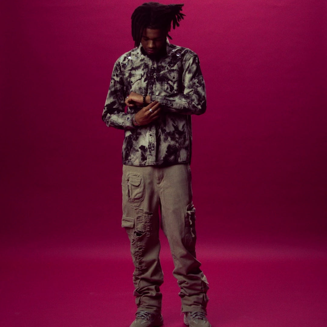 Washed-out perfection meets modern minimalism. This faded tailored shirt mixed with rhinestones on the shoulders and arms.